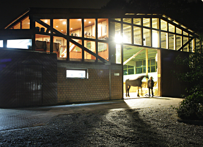 Besonders im Winter, wenn es früh dunkel wird, spielt sich das Reitleben vorwiegend unter den großen Dächern ab.