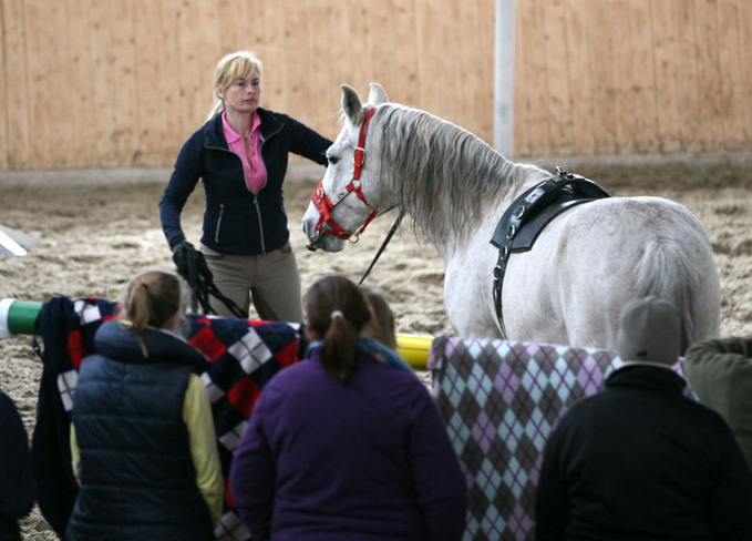 "Doppellongenarbeit ist für mich Reiten vom Boden aus und das Pferd kann ohne Reitergewicht mal locker in Dehnungshaltung und dann wieder in relativer Aufrichtung gearbeitet werden".