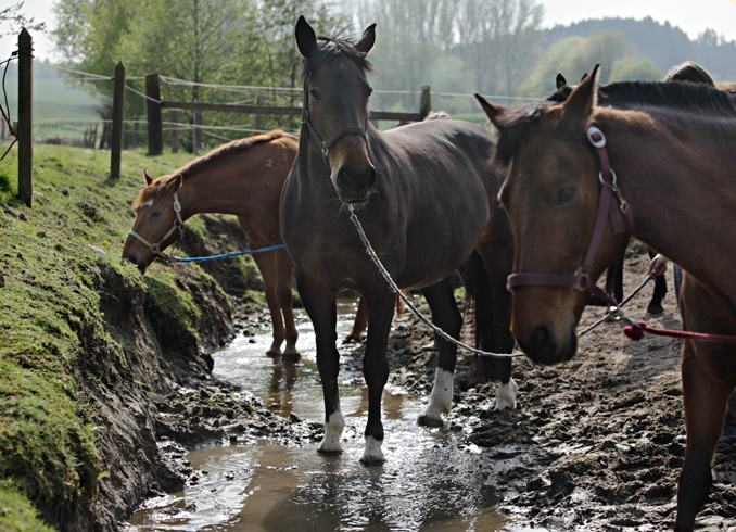 Planschbecken Der Mühlensiekbach, gesäumt von Erlenbüschen, durchfließt unseren Hof und die angrenzende Weidelandschaft. Für unsere Pferde eine wohltuende Gelegenheit, den Bach als Quelle der Erfrischung zu genießen. |